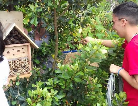 A school garden was revived by the students, who also built a pollinator insect shelter and placed it in the garden